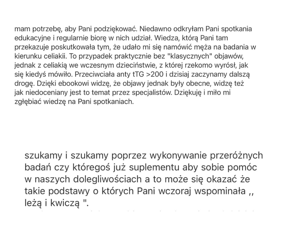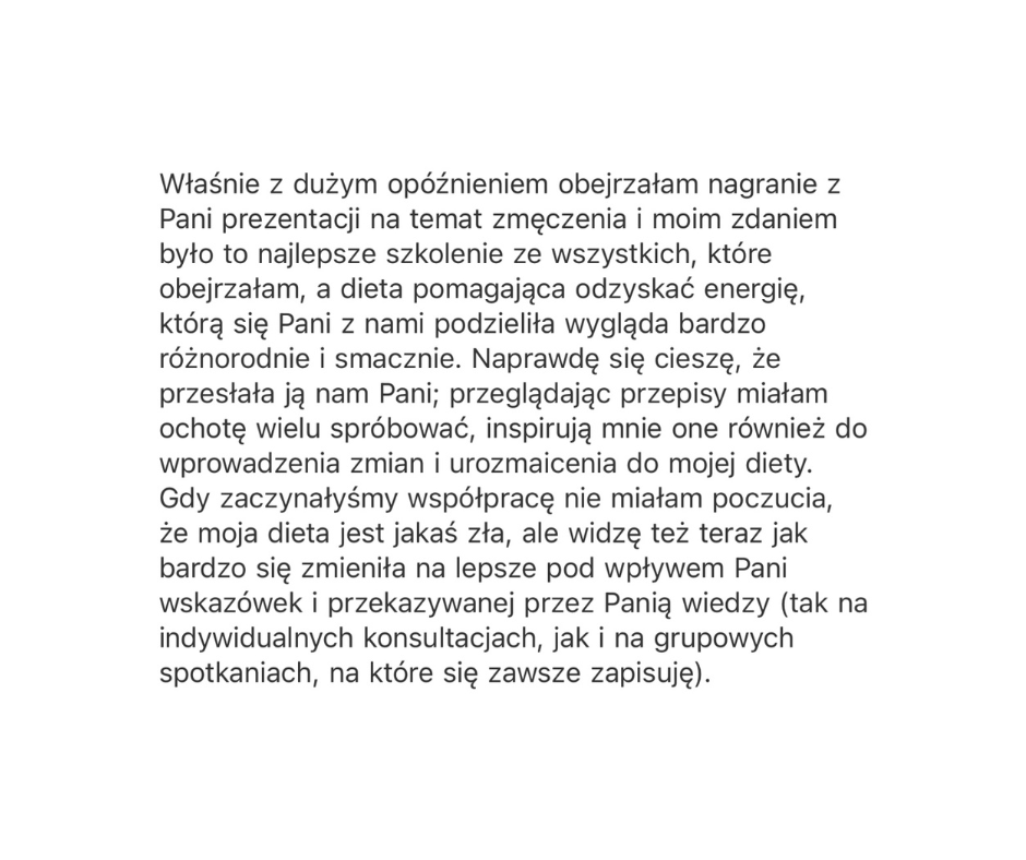 Czasami przeszkodą jest brak środków, brak czasu albo nawet brak wiary w efekty konsultacji medyczno- żywieniowych ze mną- wszystkie przeszkody rozumiem. Chcę mimo to pomóc każdemu, kto może skorzystać z mojej wiedzy i doświadczenia.